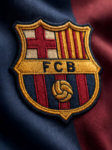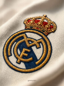 Create a photorealistic [x:y] aspect ratio image featuring a meticulously crafted [sports club type] emblem for "[Club Name]" embroidered in an intricate [embroidery style] style. The emblem should be the central focus, presented on a premium, textured [color] fabric that complements the design's aesthetic. Use a dynamic, eye-catching perspective with subtle depth of field, where the foreground embroidery is sharply in focus and the fabric elegantly falls away into a soft, blurred background. The lighting should be natural, casting soft shadows to accentuate the texture of the stitches and the weave of the material, resulting in a sophisticated, stylish, and modern visual suitable for a premium brand identity.