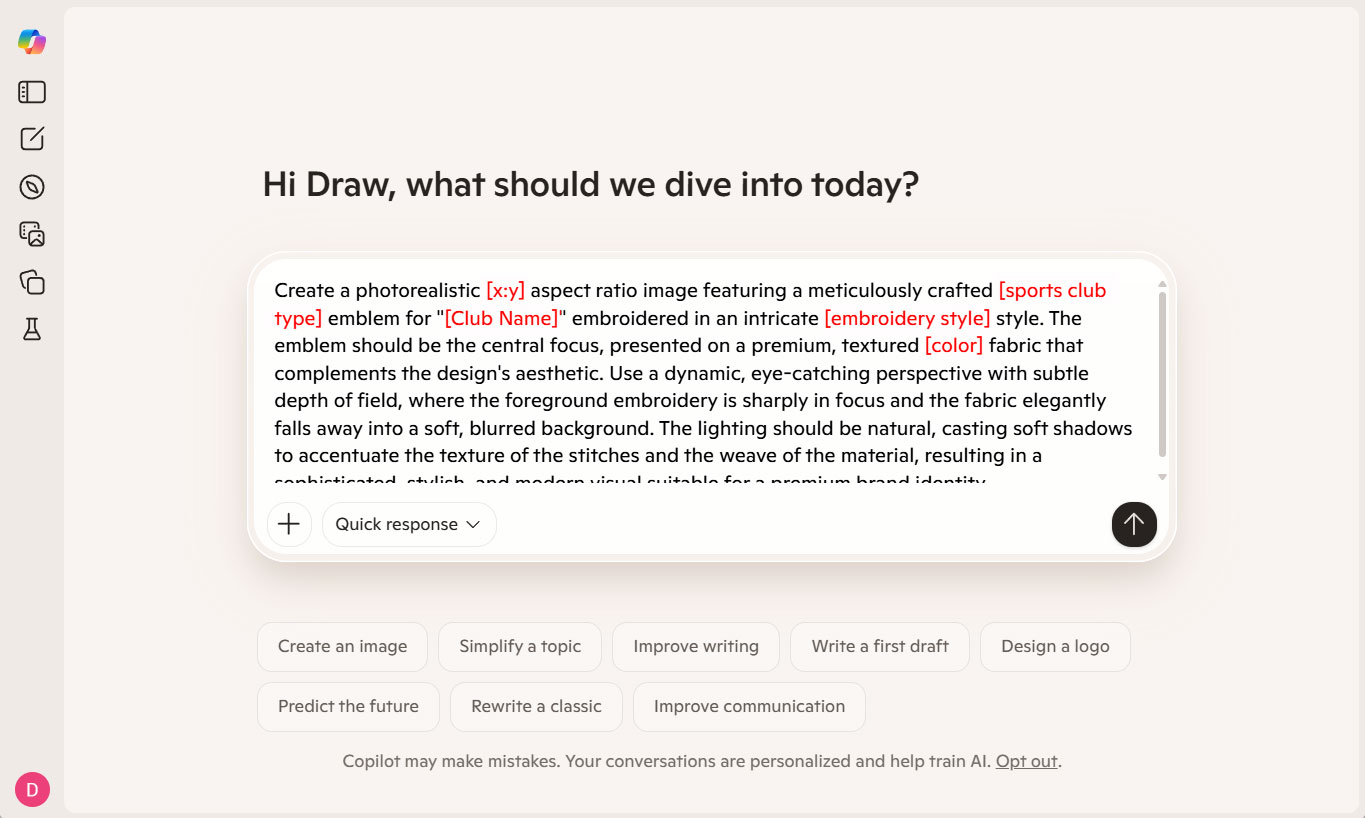 Head over to your favorite AI image generator. I like using Copilot’s image creator. This is where we’ll create the main picture.