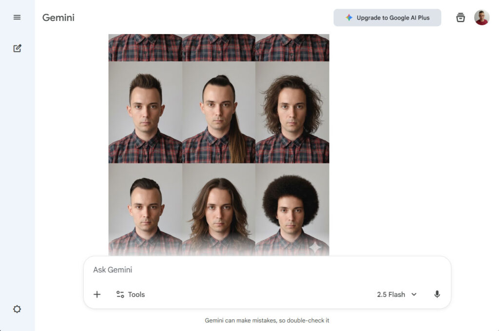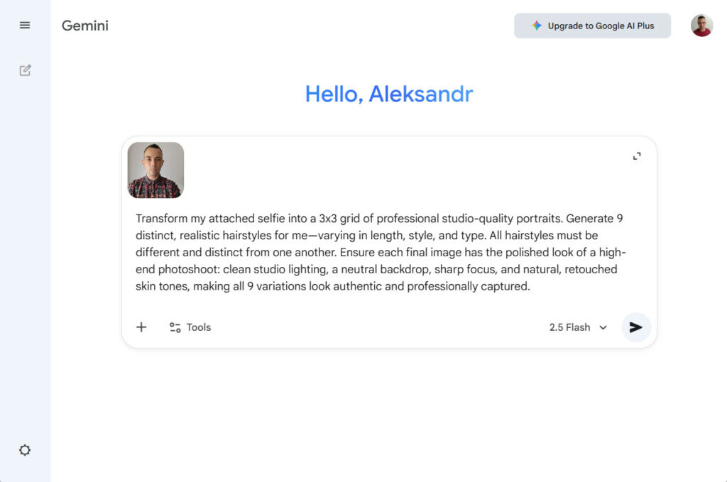 Tired of the same old look? Want to change your hairstyle but afraid of a bad haircut? With this simple trick, you can see yourself with nine different hairstyles in just one click! We’ll use the power of AI to generate a cool 3×3 grid of your photos, each with a unique and surprising new hairdo. It’s fast, fun, and completely risk-free. Get ready to discover your next favorite look!